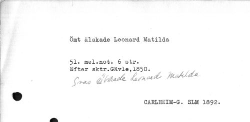 //// Ömt älskade Leonard Matilda //// 51. mel.not. 6 str. //// Efter sktr.Gävle,1850. //// ^ //// CARLHSIM-G. SLM 1892. ////