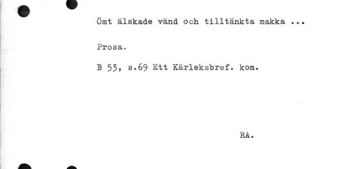//// Ömt älskade vänd och tilltänkta makka ... Prosa. //// B 53, s.69 Ett Kärleksbref• kom. //// » //// RÅ. ////