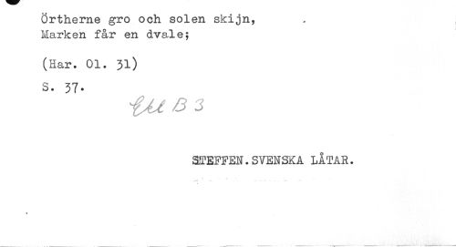 //// Örtherne gro och solen skijn, Marken får en dvale; //// (Har. 01. 31) //// s. 37. //// tU B3 //// STEFFEN.SVENSKA LÅTAR. //// v //// T"* • - • .-••»¦ ...» //// 0 ////