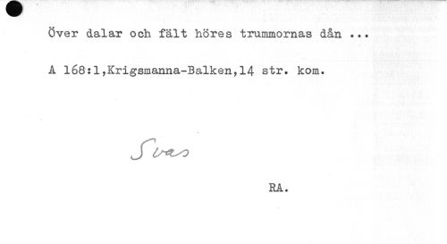 //// Över dalar och fält höres trummornas dån ... //// A l68:l,Krigsmanna-Balken,14 str. kom. //// jTlsi^o //// RA. ////