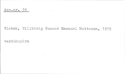 //// Aec.nr. 36 //// Visbok, Tillhörig Gunnar Emanuel Mattsson, 1915 vaxdukspärm ////