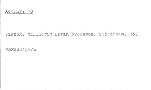 //// Aec.nr. 48 //// Visbok, tillhörig Karin Svensson, Stockholm,1932 vaxdukspärm ////