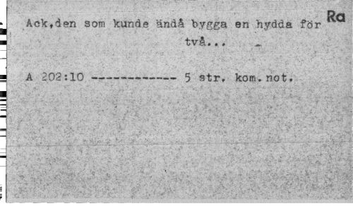 //// Ack »den som kunde ändå "bygga en hydda för //// två... //// A 202:10 ---5 str. kom. not. //// ,>• . : -..V.;'"¦' ' --.'-V . - , /'v4 ? ////