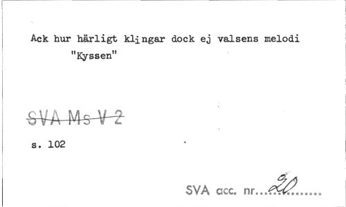 //// Ack hur härligt klingar dock ej valsens melodi "Kyssen" //// s. 102 //// SVA ccc. nr...7. ////