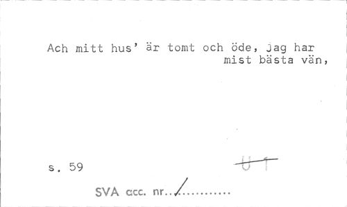 //// Ach mitt hus' är tomt och öde, jag har //// mist bästa vän, //// s. 59 -tT""" SVA ccc. nr..,/'... ////