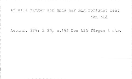 //// Af alla färger ack ändå har mig förtjust mest //// den blå //// Acc.nr. 275: B 29, s.152 Den blå färgen 4 str. ////