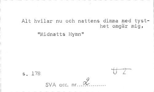 //// Alt hvilar nu och nattens dimma med tysthet omgär mig, //// "Midnatts Hymn" //// s. 178 Tmr //// o? //// SVA acc. nr... ... ////