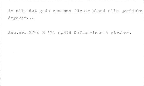 //// Av allt det goda som man förtär bland alla jordiska drycker.. . //// Acc.nr. 275i B 131 3,318 Kaffe-visan 5 str.kom. ////