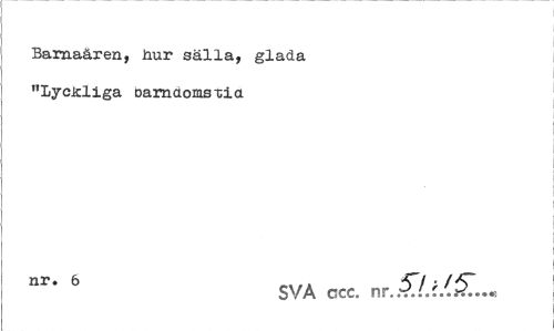 //// Barnaåren, Jaur sälla, glada "lyckliga Darnctoms-cia //// nr' 6 SVA acc. nr. ' ////