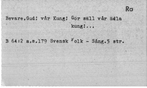 //// KO //// Bevare,Gudi vår Kung! Gör säll vår ädla //// kung!,.. //// 3 64 J 2 a,s,179 Svensk *'olk - Sång.5 str. ////