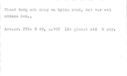 //// Bland berg och skog en hydda stod, det var ett nödens hem.. //// Acc.nr. 275: B 49, s.107 Låt glaset stå 6 str. ////