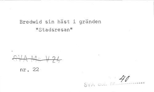 //// Bredwid sin häst i gränden "Stadsresan" //// nr. 22 //// v i-i U--V.. -i-"' ////