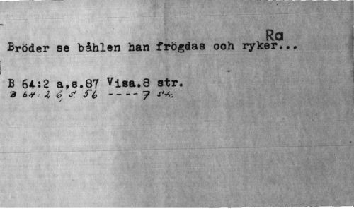 //// Ra //// Bröder se båhlen han frögdas och ryker... //// B 64:2 a,s.87 Visa.8 str. ' //// a é s'. ---7 ////