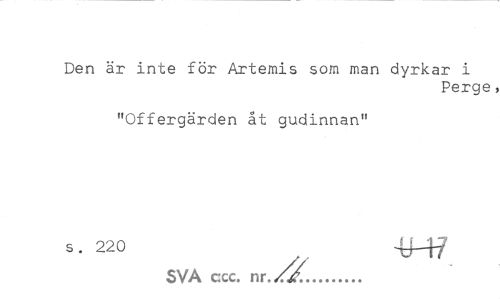 //// Den är inte för Artemis som man dyrkar i //// Perge //// "Offergärden åt gudinnan" //// s- 220 _ //// SVA ccc. nr. //... ////