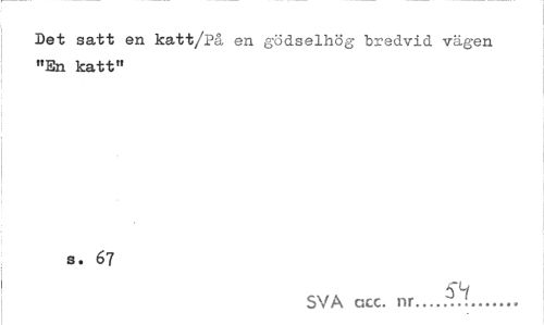 //// Det satt en katt/På en gödselhög bredvid vägen "En katt" //// s. 67 //// SVA acc. nr-...'... ////
