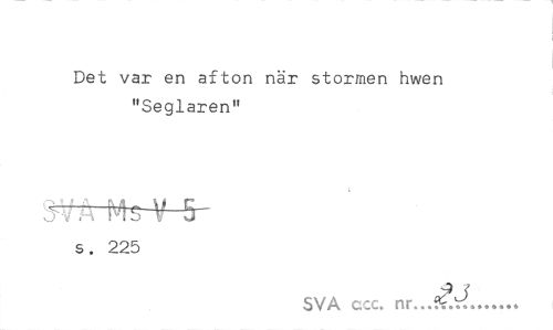 //// Det var en afton när stormen hwen "Seglaren" //// S^m-Ms-V-5- //// s. 225 //// SVA ccc. ... ////