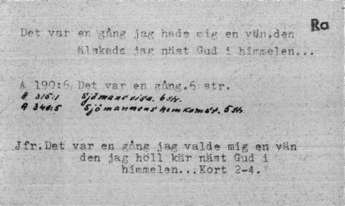 //// _ - T.- ,, - . .. v- . • .. V • .'-., - . - i r . ' • . .-:..••••.: . ,. •• •.. ••; -v - . I //// Ra //// Det var er gång jag hade mig en vän»den //// älskade jag näst Gud i' himmel en,.. //// k 190: 6 Det va r en Piång.6 str. //// # å/6":/ o xr a xs1 é //// 4 Sjö» //// Jfr.Det var en gåns jag valde mig en vän den jag höll kär näst Gud i himmelen...Kort 2-4. ////