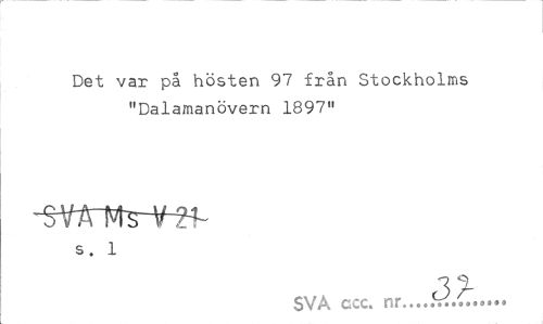 //// Det var på hösten 97 från Stockholms "Dalamanövern 1897" //// s. 1 //// ~ o //// SVA ccc. nr...W.S... ////