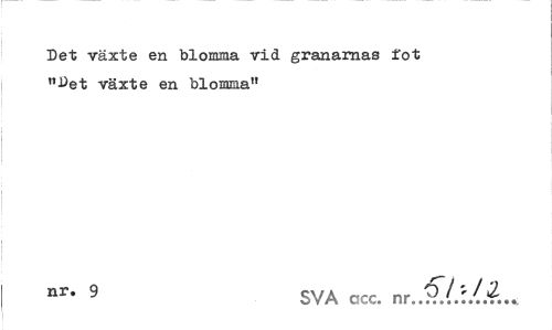 //// Det växte en blomma vid granarnas fot //// "Det växte en blomma" //// nr* 9 SVA ccc. ////