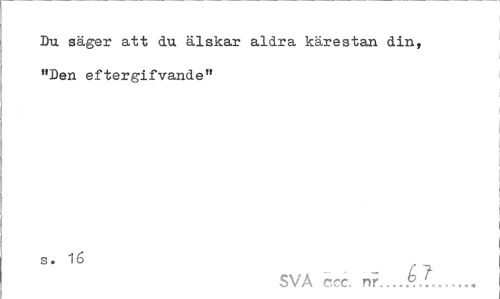 //// Du säger att du älskar aldra kärestan din, "Den eftergifvande" //// S" 16 - A ? //// SVA ccc. nr...<?.;... ////