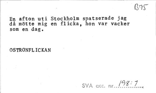 //// (Wr //// En afton uti Stockholm spatserade jag då mötte mig en flicka, hon var vacker som en dag. //// OSTRONFLICKAN //// SVA ccc. nr../!?.?/..?..,, ////