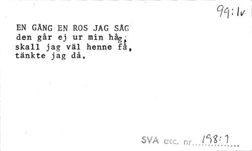 //// EN GÄNG EN ROS JAG SÄG den går ej ur min håg, skall jag väl henne få, tänkte jag då. //// SVÅ ccc. nr.J^VA ////