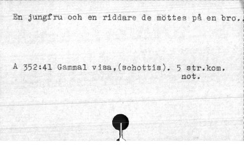 //// En jungfru och en riddare de möttes på en bro. //// A 352:41 Gammal visa,(schottis). 5 str.kom. //// not. //// f ////