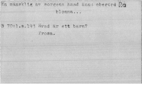 //// Hn mänsvii/r av sorgens hand ann t oberörd //// blomma.., //// B 70s].s.19? "vad är ett barn? trosa. //// v,. : ...^... ////