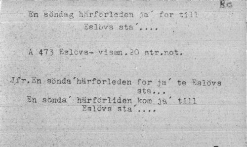 //// En söndag härförleden ;'-a' for till Eslövs sta //// A 4?3 Eslövs- visan.20 str.not. //// ' ' ¦ : ."¦ * ¦ //// Jfr.En sönda'härförleden for .ja" te Eslövs //// sta.,. //// En sönda' härförliden kom .ja' till Eslövs sta'... ////