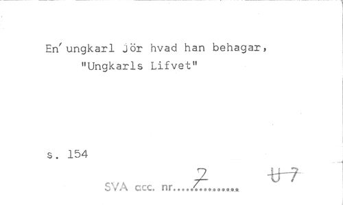 //// En'ungkarl jör hvad han behagar, "Ungkarls Lifvet" //// s. 154 //// 7 -trf //// SVA ccc. nr... ////