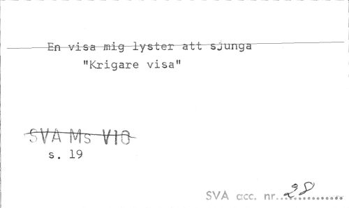 //// -En visa mig lystei atl sjunga //// "Krigare visa" //// ^rMs-im- //// s. 19 //// SVA ccc. nr. //// 9 » • • ////