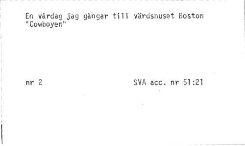 //// En vårdag jag gängar till värdshuset Boston "Cowboyen" //// nr 2 SVA acc. nr 51:21 ////