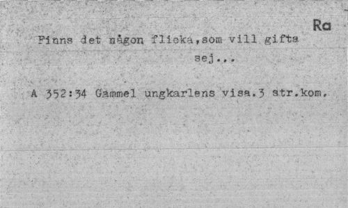 //// Ra //// Finns det någon flicka,som vill gifta //// sej., . //// A 352:34 Gammel ungkarlens visa.3 str.kom. ////