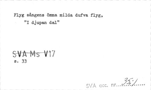 //// Flyg sångens ömma milda dufva flyg, "I djupan dal" //// SVft-Ms-V17 //// s. 33 //// SVA ccc. nr. ////