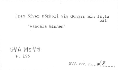 //// Fram öfver mörkblå våg Gungar min lätta //// båt //// "Wandala minnen" //// hr^Ä MS V«i //// s. 125 //// SVA ccc. nr. ////