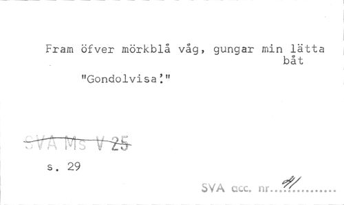 //// Fram öfver mörkblå våg, gungar min lätta //// båt //// "Gondolvisa'." //// trTÄ sv1s ViN^ //// s. 29 //// SVA cscc. ... ////