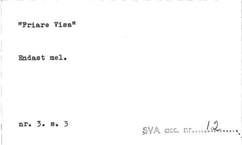//// "Friare Visa" //// Endast mel. //// nr. 3. s. 3 I/) //// SVA ccc. nr... ////