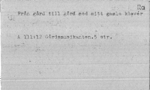 //// Från gård till gård ired mitt gamla klaver A 111:12 'Gårdsmusikanten-. 5 str. t ¦ //// i ////