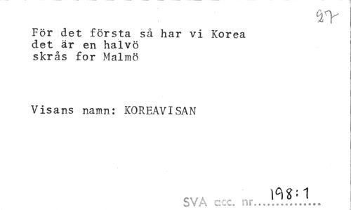 //// TY //// För det första så har vi Korea det är en halvö skrås for Malmö //// Visans namn: KOREAVISAN //// SVA. c, \L ////