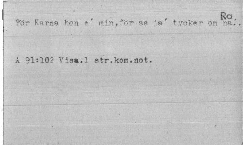 //// Ra, //// ?ör Karna v^on •*¦ ' s? a' i veke ~ om na.". //// A 91:162 Visa.1 str,kom.not, ////