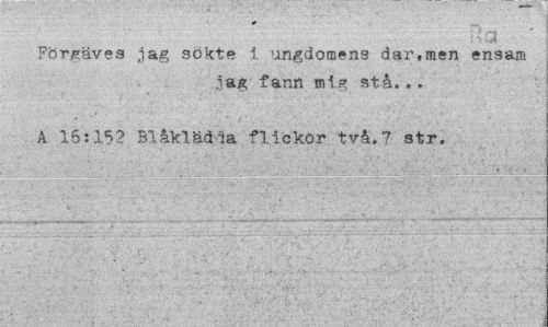 //// * s //// ...-v-r i t O .¦. - //// Förgäves jag sökte i ungdomens dar,men ensam //// iag fann mig stå. . . //// A 16:152 Blåklädda flickor två.7 str. ////