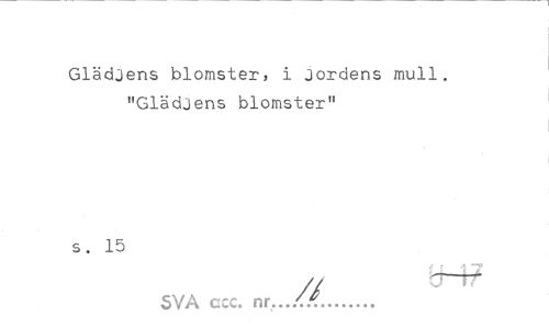 //// Glädjens blomster, i Jordens mull. "Glädjens blomster" //// s. 15 //// // ^ SVA ccc. nr.../... ////