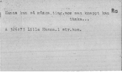 //// | Hanna kan så många t ing, som man knappt kan //// tänka..,' //// A 326:7 5 lilla Hanna.1'str.kom. //// - ////