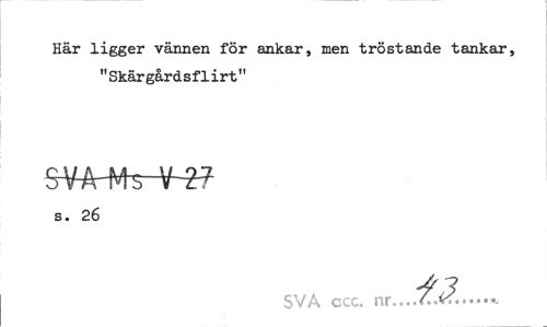 //// Här ligger vännen för ankar, men tröstande tankar, "Skärgårdsflirt" //// SVA-MttV-2? //// s. 26 //// SVÅ ccc. nr. n... ////
