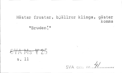 //// Hästar frustar, bjällror klinga, gäster //// komma //// "Bruden'." //// s. 11 //// SVA cc .. nr...//... ////