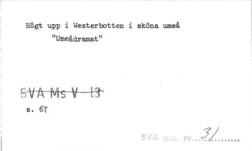 //// Högt upp i Westerbotten i sköna umeå "Umeådramat" //// &WrMs~V-B" //// s. 67 //// SVA c . . nr... ////