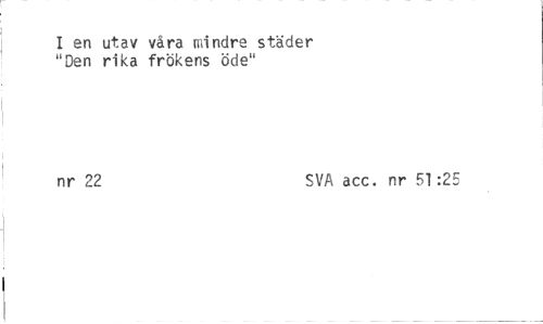 //// I en utav våra mindre städer "Den rika frökens öde" //// nr 22 SVA acc. nr 51:25 ////