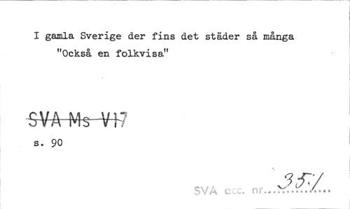 //// I gamla Sverige der fins det städer så många "Också en folkvisa" //// -SVA Ms V17 //// s. 90 //// SVA c c. nr.. ////