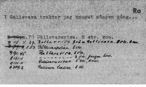 //// Ra //// I Gällevara trakter jag knogat mången gång... »i'ffjirj.70 Gällevaravisa. 8 str. kom. //// 3 ä< i 7. «" ** ' ^ " + . K+m. //// ??/.• y> & * ////