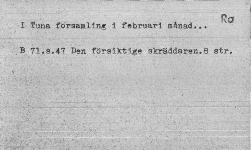 //// Ra //// I runa församling i februari manad.., B 71,s.4T Ben försiktige skräddaren.8 str. ////